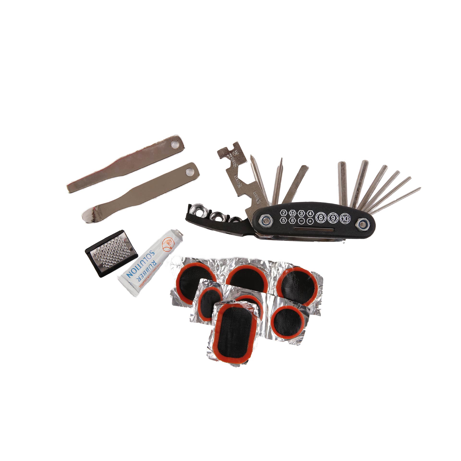 – Multi-Tool: Includes various functions for tire repair, brake adjustment, and more.